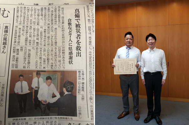 ■岡山県より倉敷市真備町被災者救命にて感謝状をいただきました。■